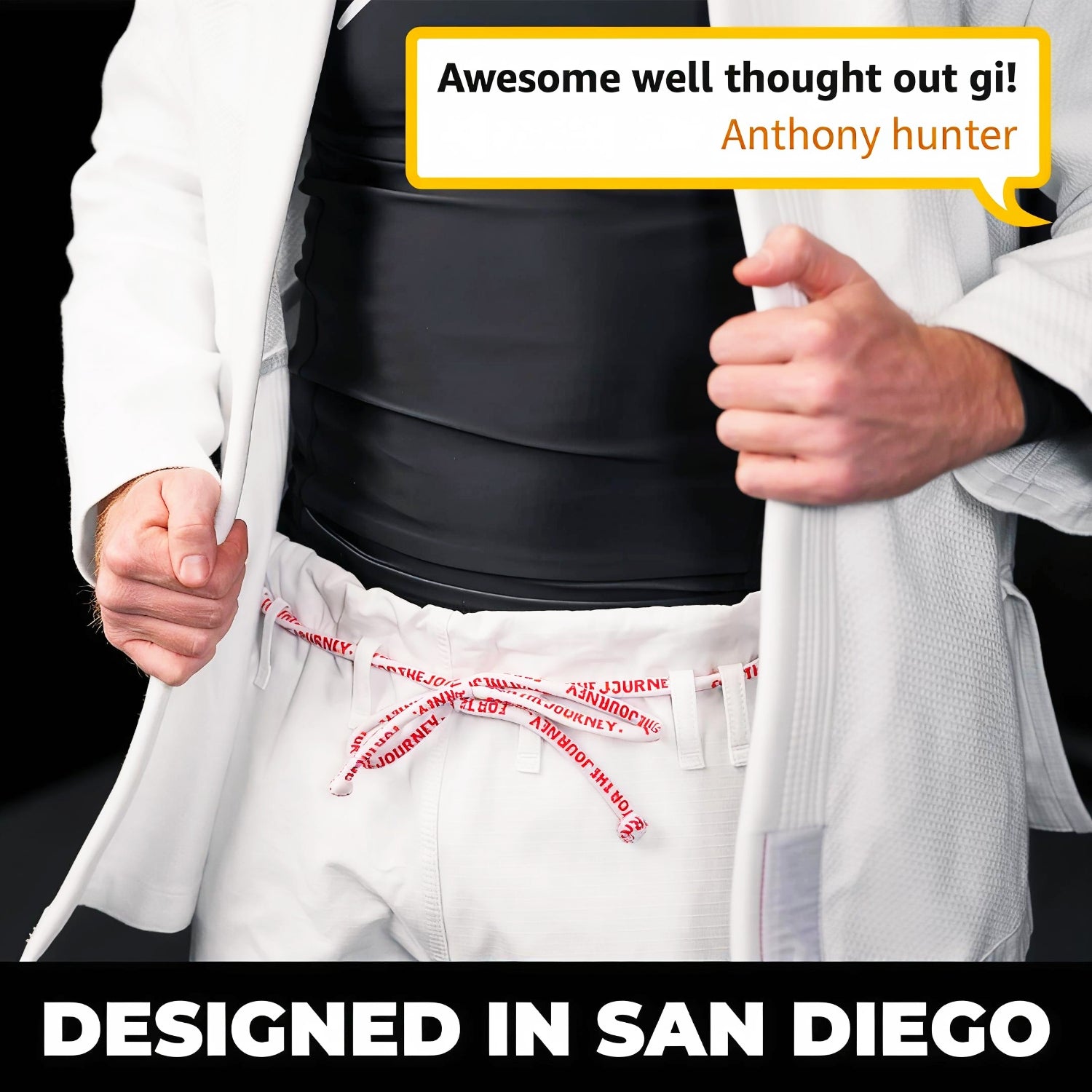 Experience the perfect balance of comfort and strength with our 450gsm Gold Weave Jiu Jitsu Gi. This medium-weight weave delivers the toughness of a double weave while maintaining the light, flexible feel of a single weave—ideal for both training and competition.